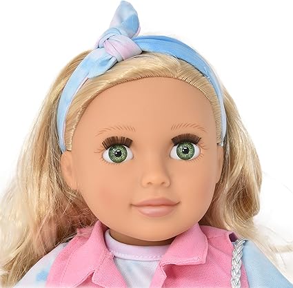 - Meet Emily – At 18” tall, Emily has a soft Caucasian skin tone, green eyes & blond lush hair. Extremely versatile hair, ideal for styling and experimenting different looks.